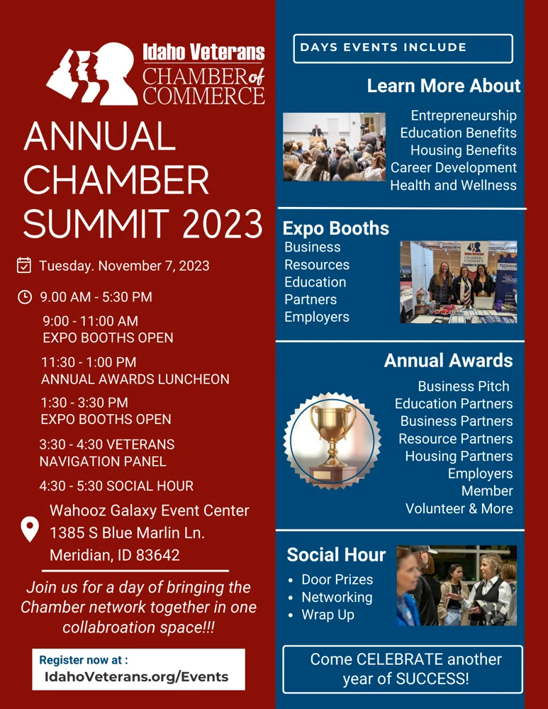 To register and learn more: Idaho Veterans Chamber Annual Summit and Awards Luncheon