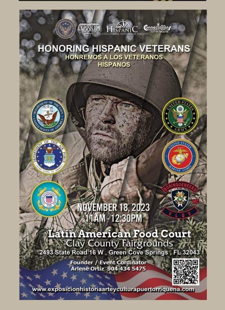The Jacksonville Veteran Chamber of Commerce is partnering with the Hispanic Multicultural Historical Society for the 2nd Annual “Honoring Hispanic Veterans ” event on November 18, 2023, 11:00 am – 12:30 pm. The Jacksonville Veteran Chamber of Commerce is looking for Veteran Nonprofits and supporters of Veterans to be vendors on November 18th – 19th (both days are not required) for the entire event days at the Clay County Fair Grounds. Last year’s event had well over 3000 in attendance. This year will be larger than before.