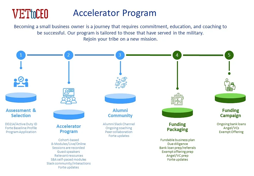 Our Veterans Business Accelerator Program is led by accomplished small business owners who are also veterans.