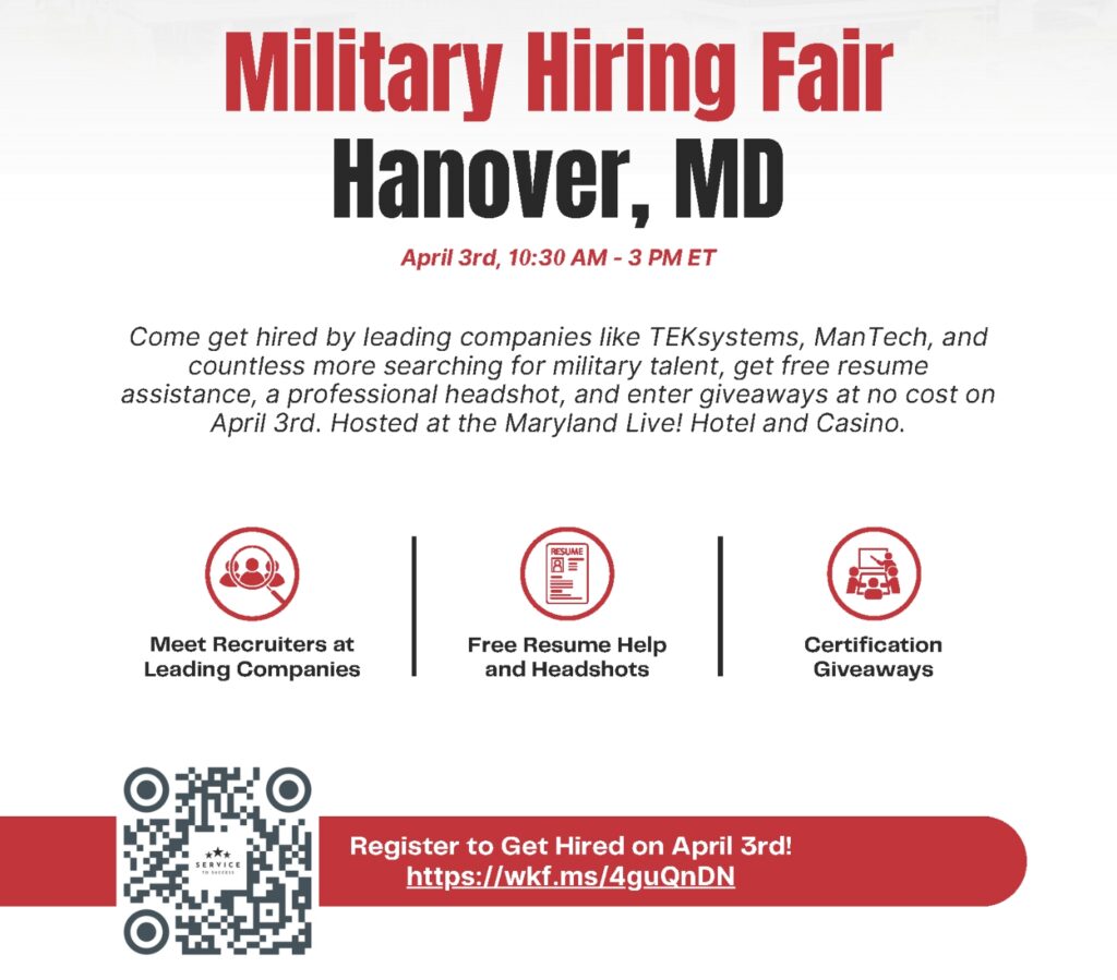 Register: Military Hiring Fair – April 3rd in Hanover, MD Registration