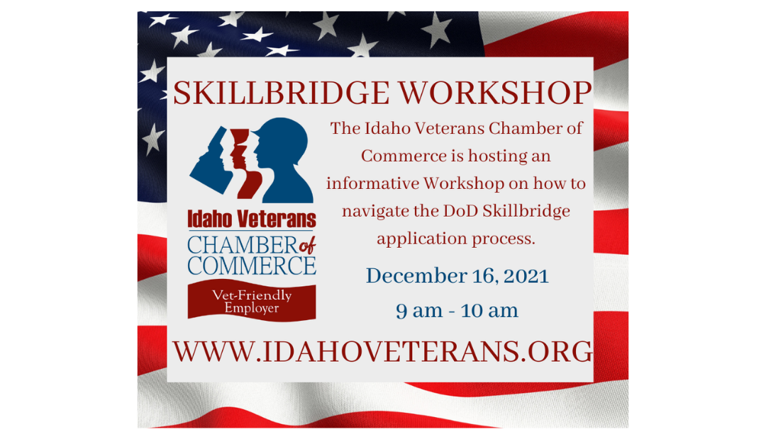 Join the ID Veterans Chamber of Commerce for their workshop where they provide information on the program, how they can help, and the success the Idaho Veterans Chamber of Commerce has had with having 3 DoD members in transition that have joined them as an internship during their last six months of Active Duty!