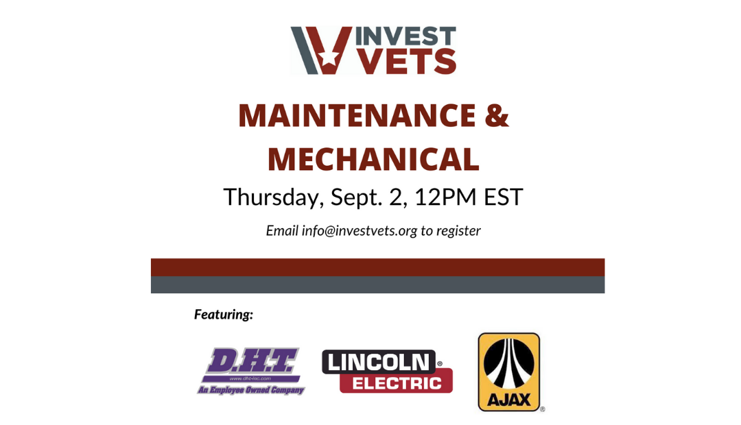 Join us Thursday, September 2 at Noon (EST) for our Virtual Networking Event featuring employers in the Maintenance & Mechanical Sector.
