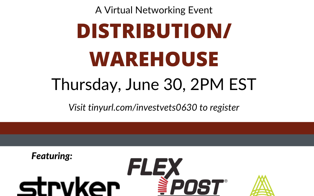 Attention Veterans, Active Service Members, Guard Members, Reservists, Family Members and Community Organizations! Join us Thursday, June 30 at 2:00pm EST for our Virtual Networking Event featuring employers in the Distribution / Warehouse Sector. Check out the participating employers.