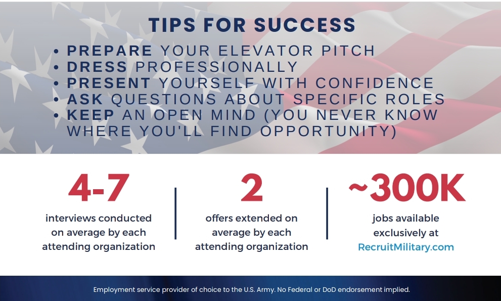 At a Veteran Job Fair, you can begin the selection process with what is normally one of the final stages of a face-to-face meeting with the candidate. We present these events in cooperation with leading corporations, news media, industry associations, veterans organizations, and government agencies. All Veteran Job Fairs take place in major military markets. To attract job candidates to the fairs, we promote the events intensively to our huge database of registered candidates, and we run display ads in major newspapers in the areas where they will take place.