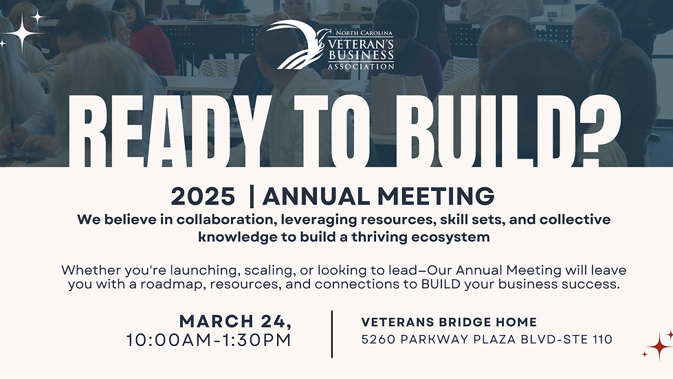 This isn’t just a meeting—it’s a business pulsecheck and a blueprint for action. We’re laying the foundation for growth, leadership, and business success that will elevate Veteran and Milspouse-owned businesses across North Carolina.