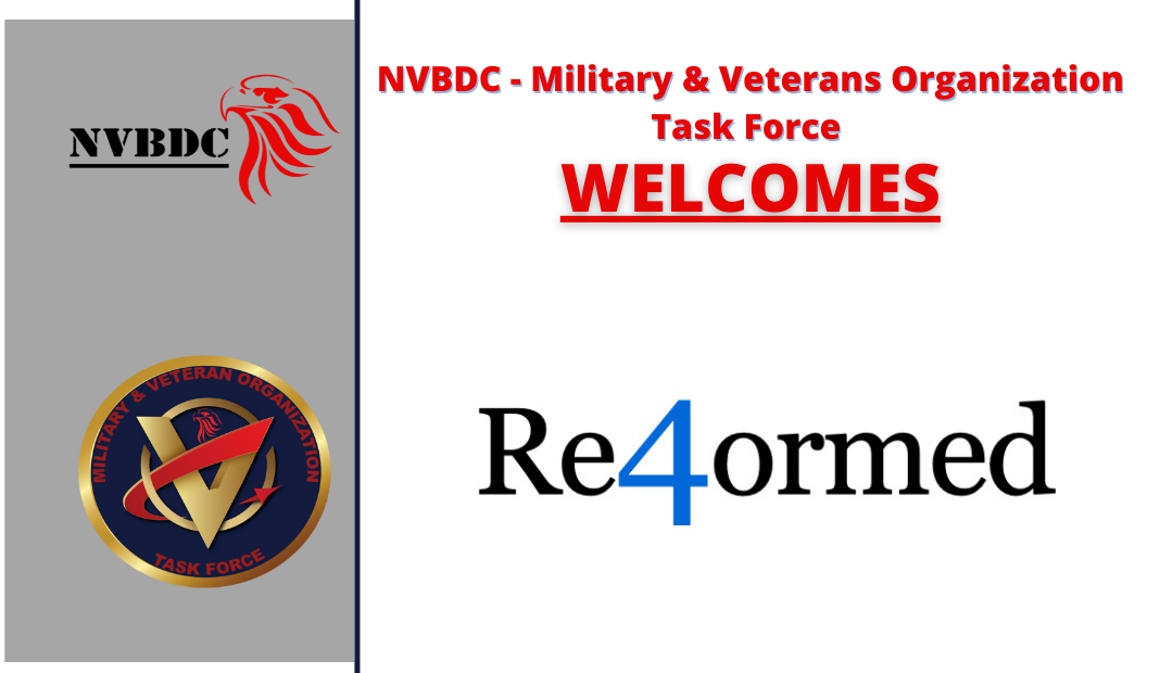 “We founded Re4ormed to help veterans and military-spouses launch and grow their businesses, and we’re excited to become part of the NVBDC Task force to help certify the more mature small businesses to do business with the corporate world and help them thrive.” Said Mark Mhley, Founder, Re4ormed.