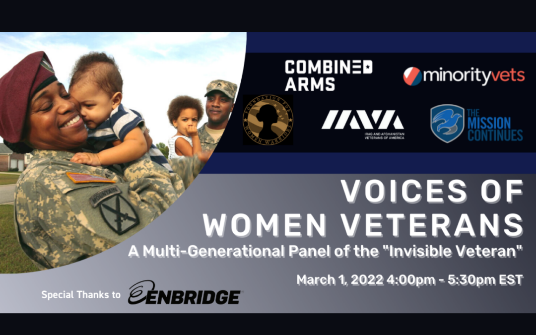 Join Combined Arms, Minority Veterans of America, The Mission Continues, Iraq & Afghanistan Veterans of America, & Foundation for Women Warriors on March 1st as we come together to celebrate and honor the intersectional experiences of women veterans around the country in honor of Women’s History Month.
