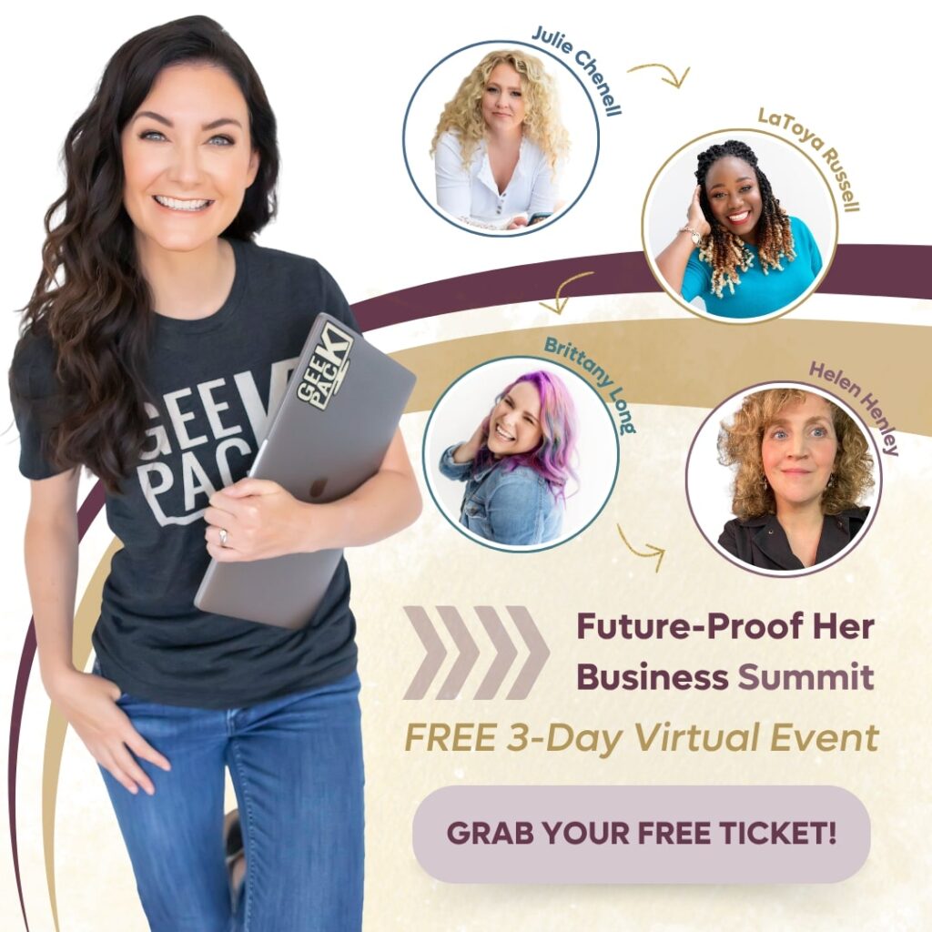 We’re thrilled to invite our fellow Task Force members and their communities to join GeekPack for the July Future-Proof Her Business Summit, a FREE 3 -day virtual event dedicated to helping women entrepreneurs navigate AI overwhelm, uncertainty, and smart business growth.