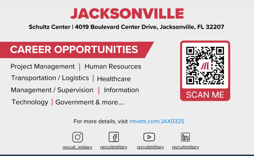 RecruitMilitary has held 40 events in Jacksonville, drawing 15,023 attendees and 1,654 exhibitors.