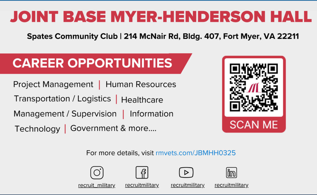 RecruitMilitary has held 1 event in Joint Base Myer-Henderson Hall, drawing 171 attendees and 47 exhibitors.