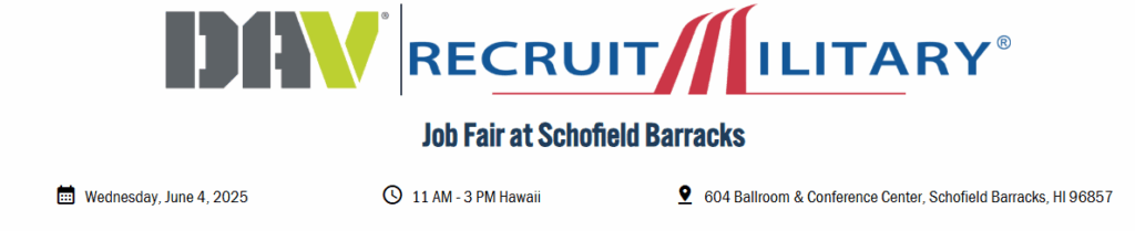 RecruitMilitary is excited to present our inaugural veteran recruiting event in Schofield Barracks, HI. We look forward to having you join us and help make the event a great success for area veterans and companies