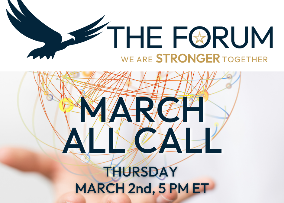 The FORUM All Call is a monthly virtual networking and mutual support event for veteran and military spouse entrepreneurs.