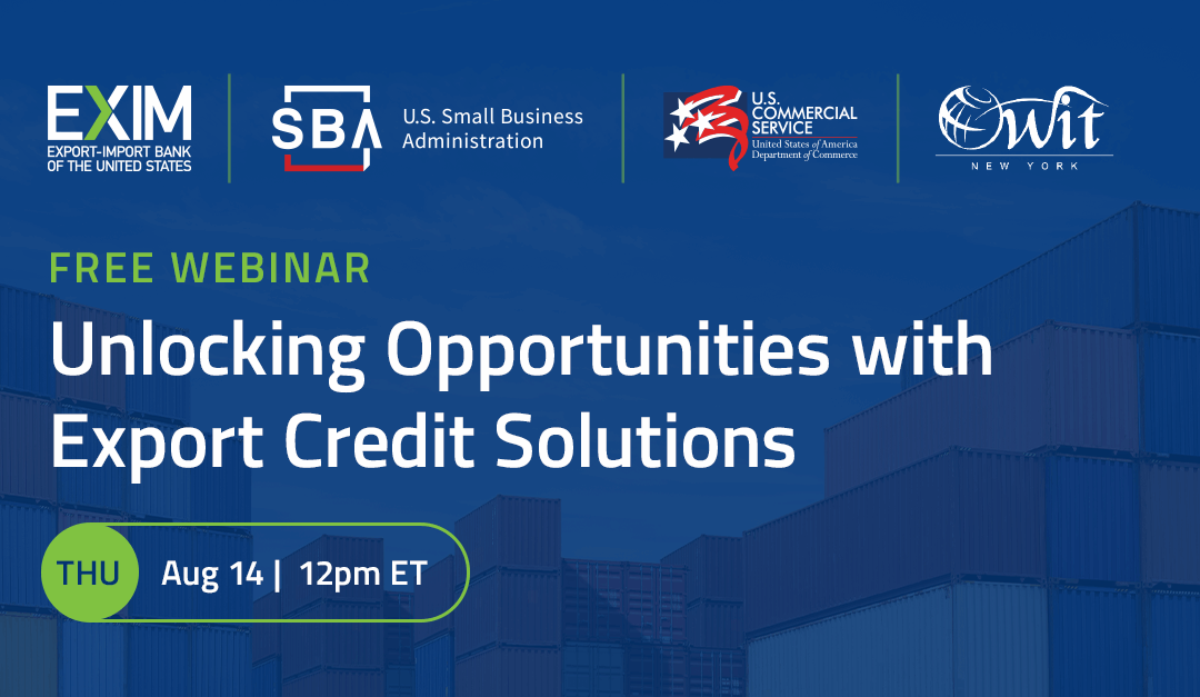 Join the Export-Import Bank of the United States (EXIM) for a free, expert-led webinar in collaboration with the Organization of Women in International Trade–New York (OWIT-NY), the U.S. Small Business Administration (SBA), and the U.S. Commercial Service (USCS).