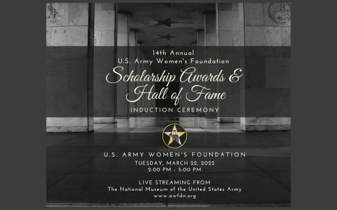 Please join us on Tuesday, March 22, 2022, at 2 pm EDT. As our nation celebrates Women’s History Month, the U.S. Army Women’s Foundation (AWF) will recognize extraordinary Army Women by inducting the 2022 class of Army women into the Army Women’s Foundation Hall of Fame. To see the list and bios of the 2022 Hall of Fame Class, visit our website.