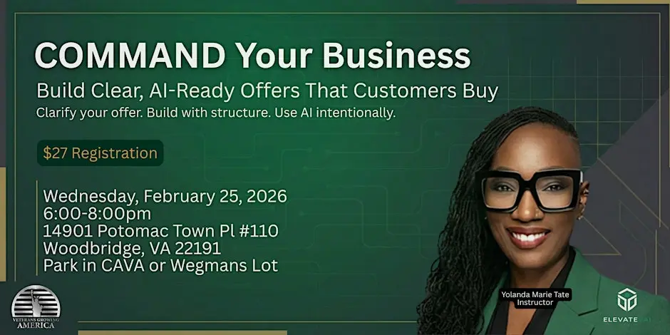 Get tickets:   COMMAND Your Business: Build Clear, AI-Ready Offers That Customers Buy Tickets, Wed, Feb 25, 2026 at 6:00 PM | Eventbrite