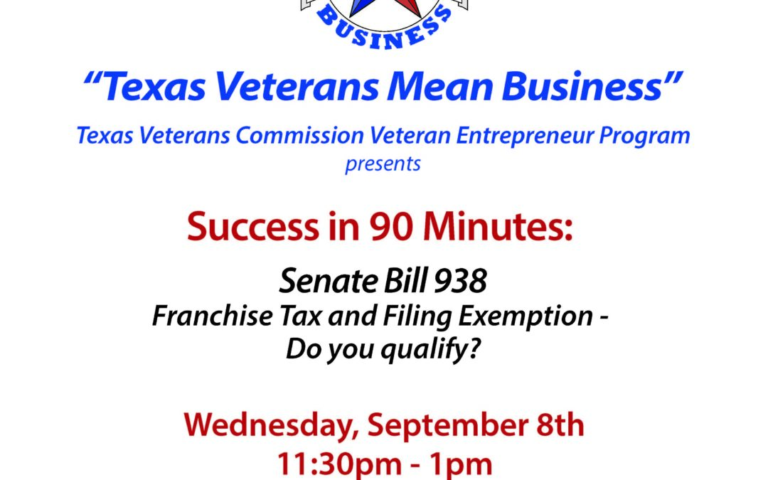 Veterans Texas Commission: Success in 90 Minutes: State Senate Bill 938 – Franchise Tax and Filing Fee Exemption:
